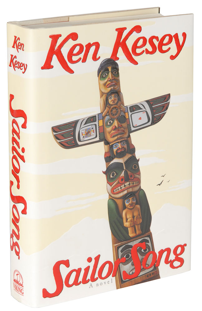 Two items: a glossy 5 x 7 publicity photo of his book Sailor Song, signed and inscribed in white and orange ink, “For Matt, from Kesey”; and a review copy of Sailor Song, hardcover with dust jacket, published by Viking in 1992, signed on the first free end page in silver ink, “Ken Kesey, 1992.” Includes the Viking review copy slip and press release. The photo is matted and framed to an overall size of 8 x 10. In overall fine condition. Pre-certified PSA/DNA.