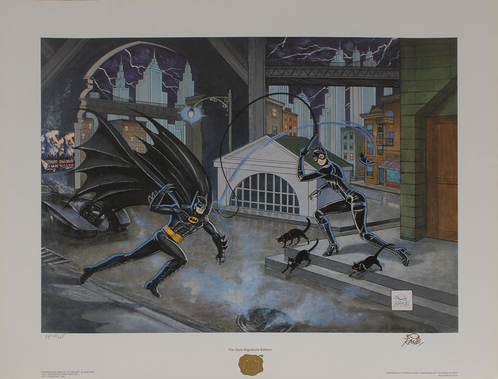 Color limited edition 25 x 20.5 print entitled 'A Dangerous Game of Cat and Bat,' numbered PP 45/125, signed in gold ink by Kane. In fine condition. Pre-certified PSA/DNA.