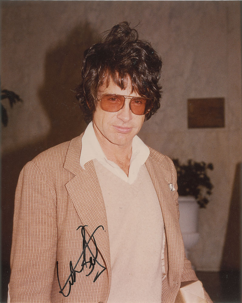 Color glossy 8 x 10 half-length photo of Beatty with disheveled hair and sunglasses, signed in black felt tip. Reverse bears an ownership stamp and Book City Collectables label. In fine condition. From the Harvey and Rhoda Kuflik Collection. Pre-certified PSA/DNA.