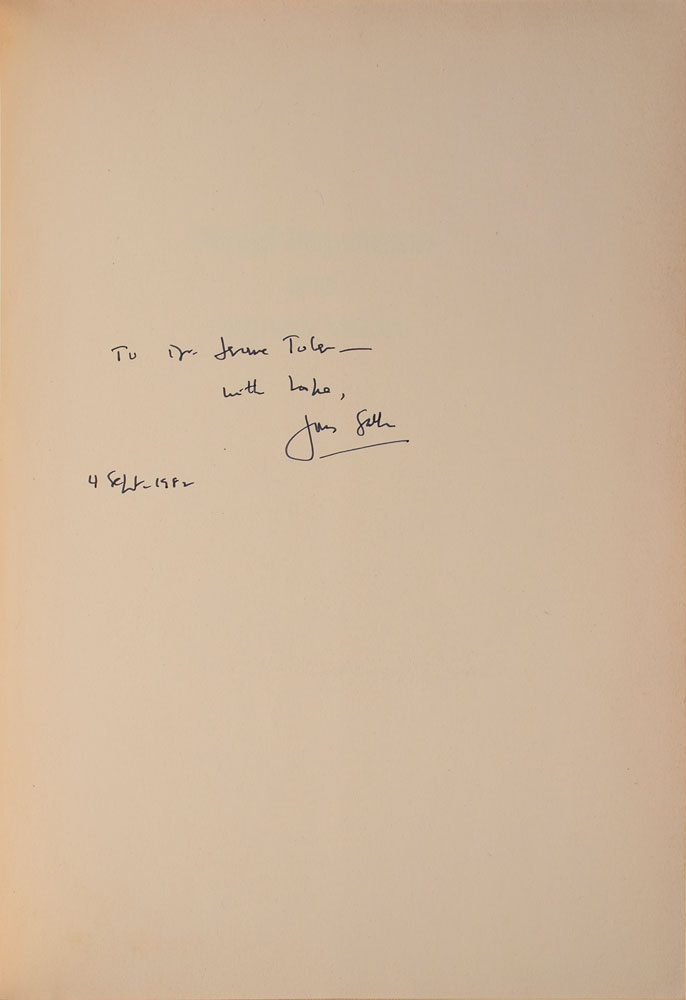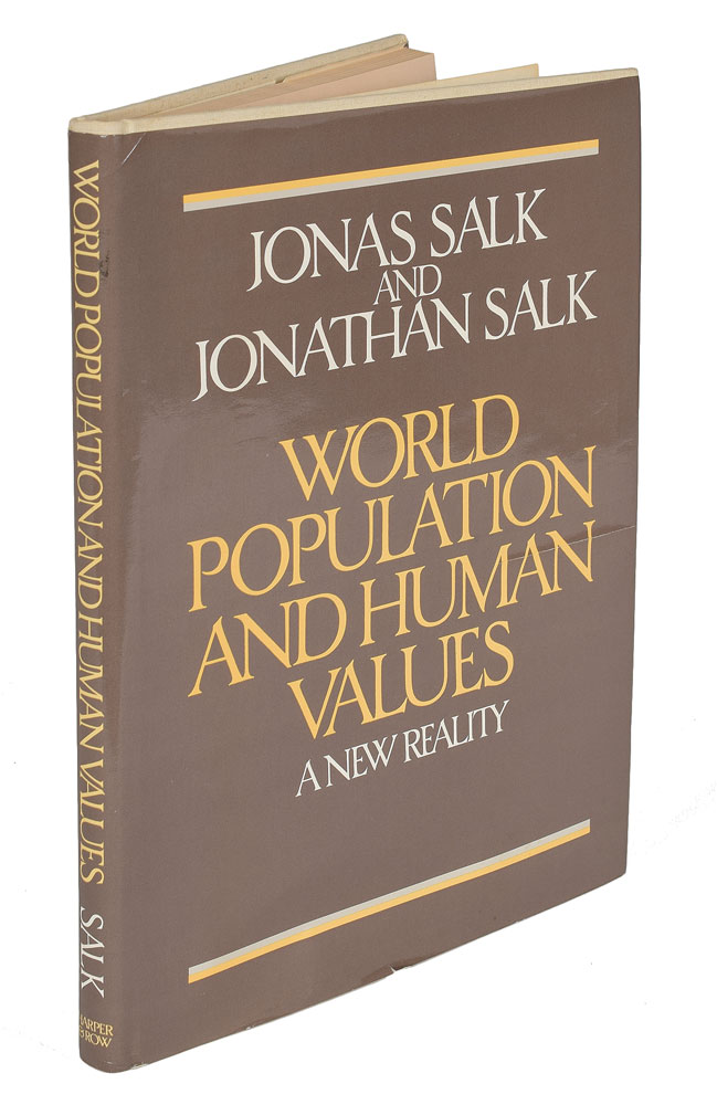 Signed book: World Population and Human Values. First edition. NY: Harper & Row, 1981. Hardcover with dust jacket (price-clipped), 8.5 x 11.25, 170 pages. Signed and inscribed on a free end page in black ink, and dated September 4, 1982. In fine condition, with a repaired slit to the front of the dust jacket and some mild creasing.