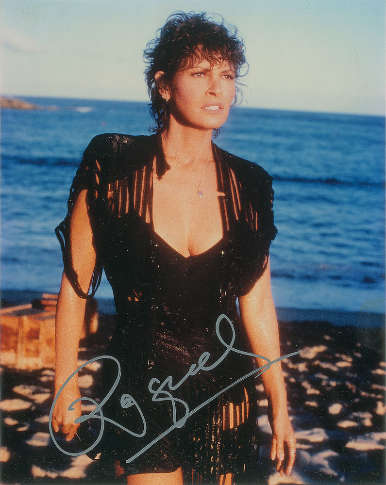 Color glossy 8 x 10 photo of Welch at the beach, signed in silver ink. In fine condition. From the Harvey and Rhoda Kuflik Collection.