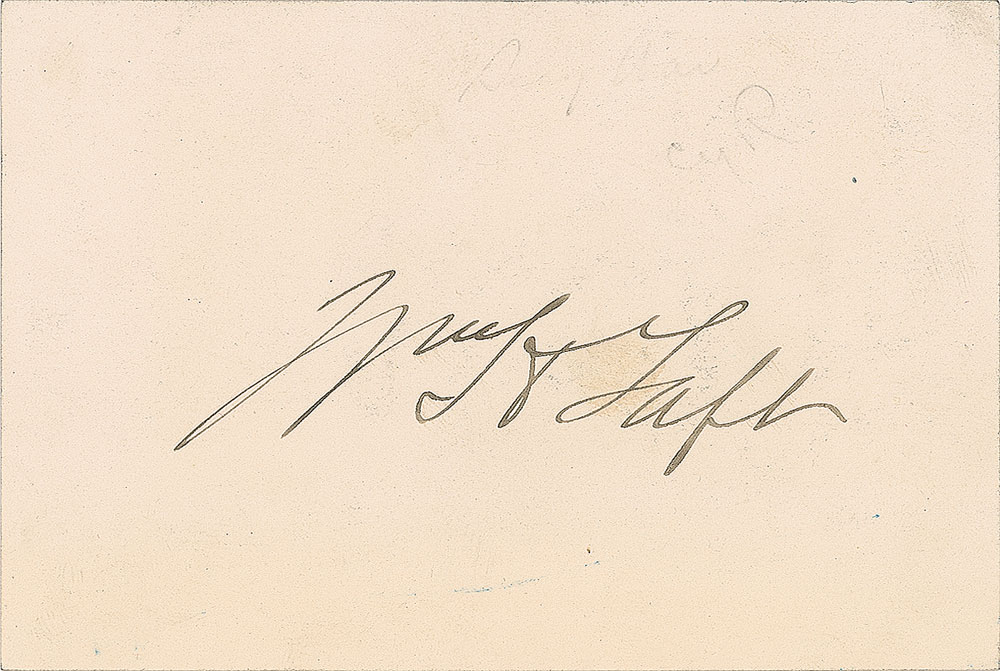 Ink signature, "Wm. H. Taft,” on an off-white 4 x 2.75 card. In fine condition, with a very light stain to the start of his last name.