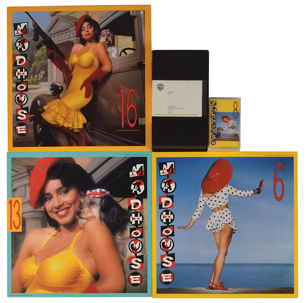 Five items relating to the Prince-created jazz fusion band Madhouse, including: a cassette tape for the band's debut album 8; a video cassette for the Madhouse single '10,' with original case and labels indicating that the VHS originates from the "Warner Bros. Rec.-Library"; and three Madhouse records, including: a 6 single album; a 13 promotional single album; and a copy of the project's second studio album, 16. In overall very good to fine condition, with a crack to cassette holder and a punch hole to 16 album. All media is included. From the collection of Prince's assistant Stachia Fiedler and accompanied by a letter of provenance.