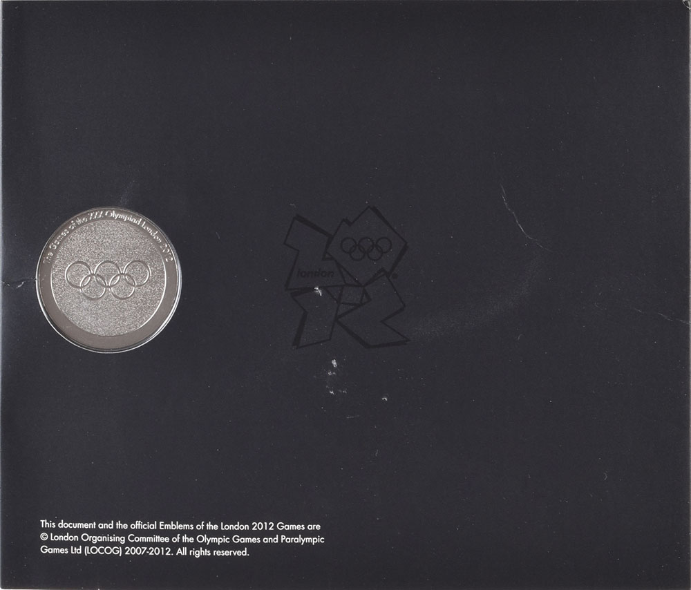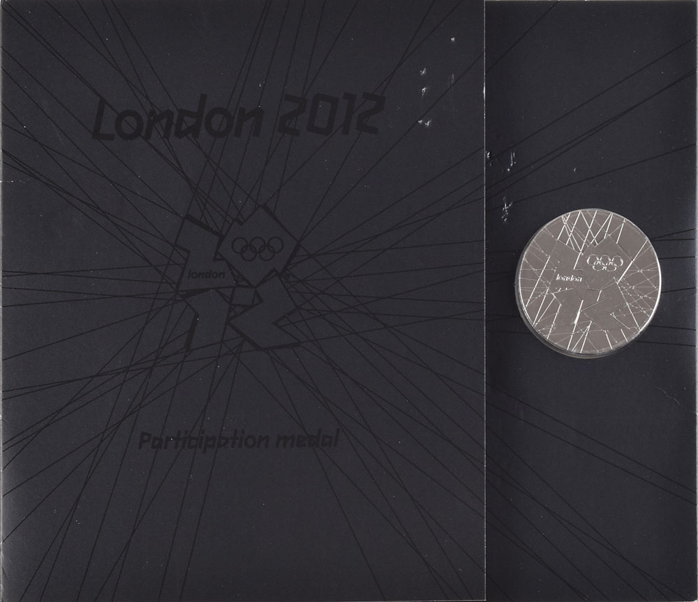Desirable participation medal issued for the 2012 London Summer Olympics. Cupronickel, 38 mm, 42 gm, designed by Gordon Summers. The front features the London 2012 logo; the reverse bears the Olympic rings with engraved text along the top, “The Games of the XXX Olympiad London 2012.” Complete with its black presentation booklet and sealed in its original packaging. Medals from recent Olympic games remain scarce and highly collectable.
