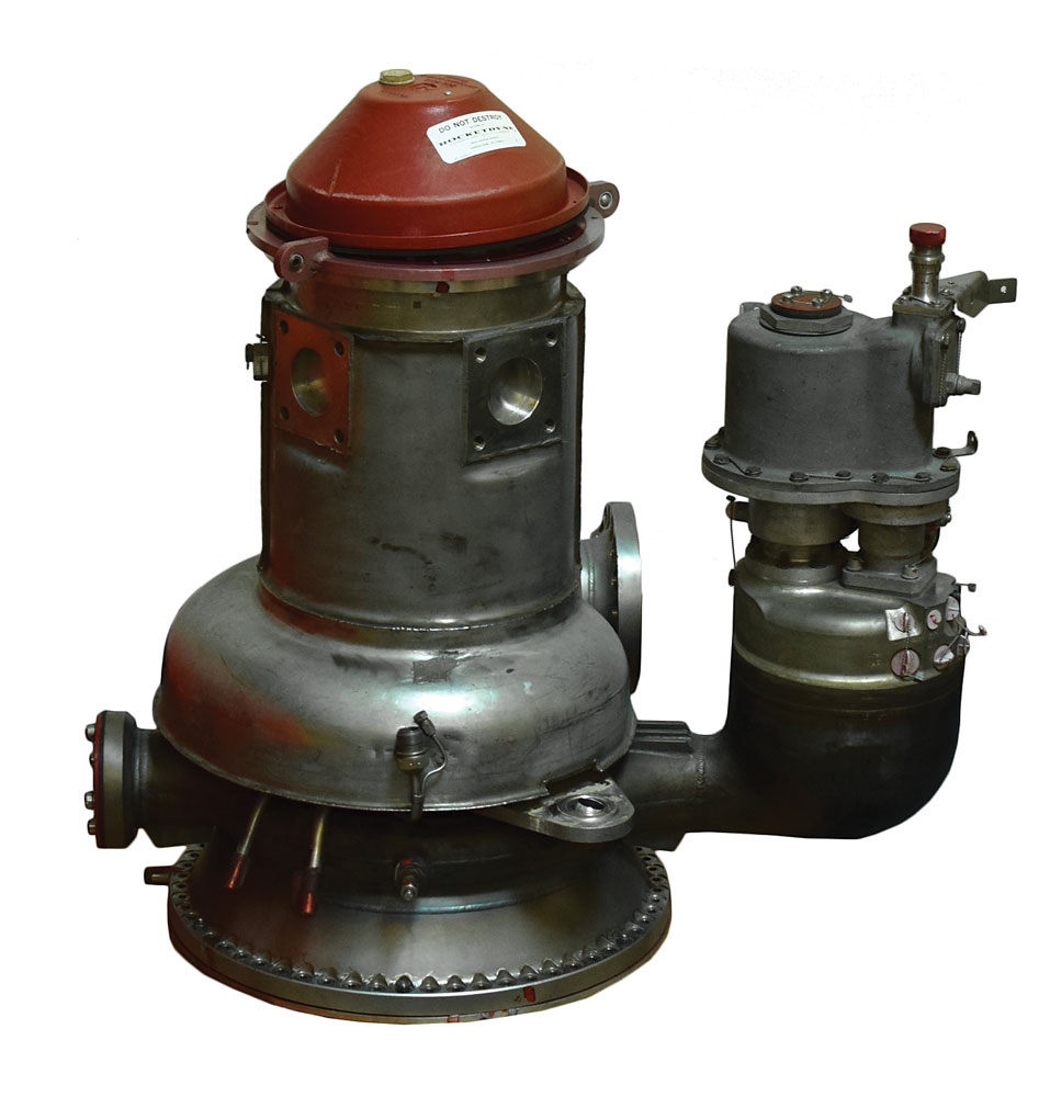 Mounted on the engine’s thrust chamber, the high-speed fuel turbopump was associated with the liquid hydrogen propellant feed system. As a turbine-driven, axial flow-pumping unit, theJ-2 assembly boosted pressure of the propellant so that it could be fed into the injector/thrust chamber at the correct rate for combustion. This was one of two on each J-2, the second of which was connected with the oxidizer side, the liquid oxygen feed system. Rocketdyne won approval to develop the J-2 in June 1960, and, nearly six years later on February 26, 1966, the engine made its dramatic debut with the launch of AS-201, the first unmanned test flight of an entire production Block I Apollo Command/Service Module and the Saturn IB launch vehicle. A significant piece of rocketry hardware dating to the very beginnings of the Apollo moon-landing program. Due to the size and/or weight of this item, this piece will need to be crated and shipped by a third party freight company. Please contact Bobby Eaton at RR Auction for additional information.