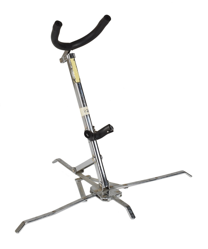 Eric Leeds's tour-used generic Hamilton tenor saxophone stand, fitted with glow-in-the-dark tape and a stage location mark, "L-2," so the band and crew would not trip over it on a darkened stage. When Leeds was playing the flute or baritone saxophone on stage with Prince, he would rest his tenor saxophone on this stand; it saw a lot of use during several tours. In very good to fine condition, with expected wear from frequent use. From the collection of musician/saxophonist Eric Leeds and accompanied by a letter of provenance. Oversized. Please contact RR Auction for a shipping quote.