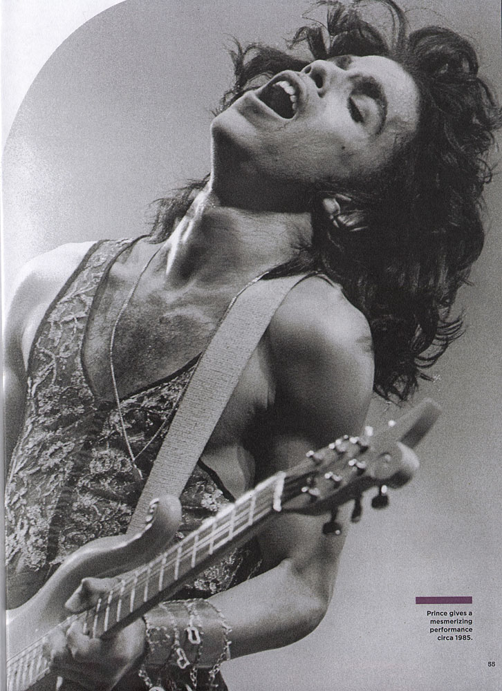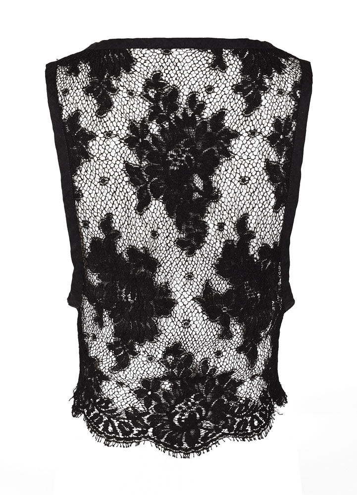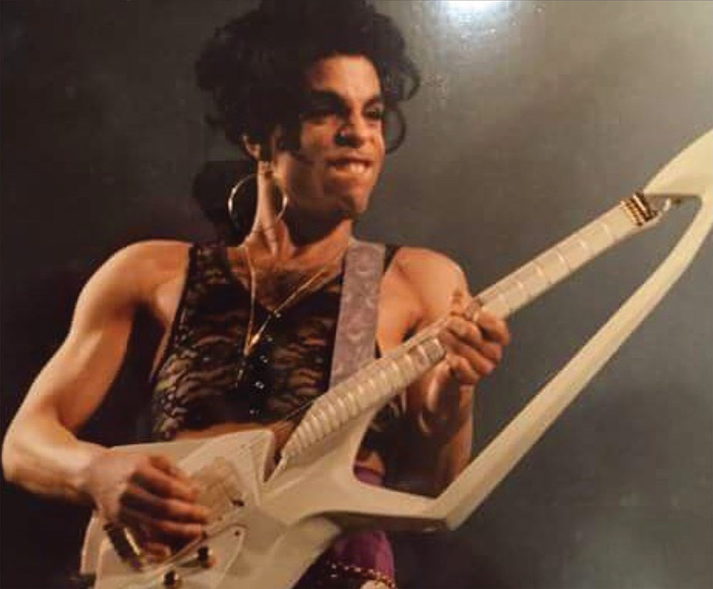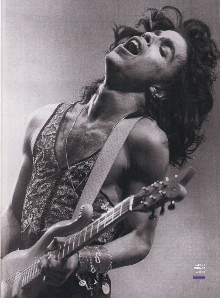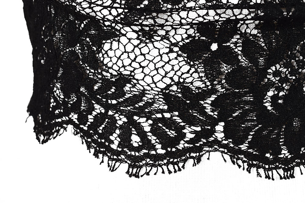 Prince's personally-owned and -worn black lace crop top vest with five snap buttons on the front, constructed of a thin black lace with floral designs. In fine condition. Prince regularly wore this type of lace vest from the mid-1980s through the early 90s, and is seen in numerous photos wearing nearly identical vests of the same cut and construction, but with the lace pattern appearing slightly different. Includes a letter of authenticity from Jeff Gold, the owner of Recordmecca and a former executive vice president/general manager of Warner Bros. Records, who worked closely with Prince during the 1990s, and art directed numerous album covers for him, including ‘Diamonds & Pearls,’ ’Love Symbol,’ and ‘The Hits/The B-Sides.’ He writes, in part: "This letter is to authenticate a custom made lace 'crop top' owned and worn by Prince. Numerous photographs show Prince wearing a nearly identical 'crop top' during live performances...This top was acquired via a former Paisley Park employee." A prime example of Prince's unique fashion sense.