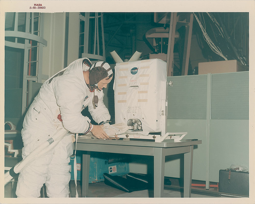One of the most incredible aspects of the Dan Schaiewitz Collection is the astounding assortment of vintage NASA photographs. As an integral part of KSC’s PLSS training, most notably on the first lunar landing mission, he actually took part in these amazing behind-the-scenes moments: Dan himself tested Armstrong’s space suit. Offered here are exceptionally rare Apollo 11 red-numbered training photographs, many of them quite possibly never-before-seen by collectors and offered here for the first time. From the collection of Dan Schaiewitz, who worked as Extravehicular Crew Training Engineer at KSC. View Dan's many Collect Space posts here. Engineer Dan Schaiewitz gives us a fascinating firsthand glimpse into his experiences on the cutting edge of space exploration during the Apollo missions, in this podcast.