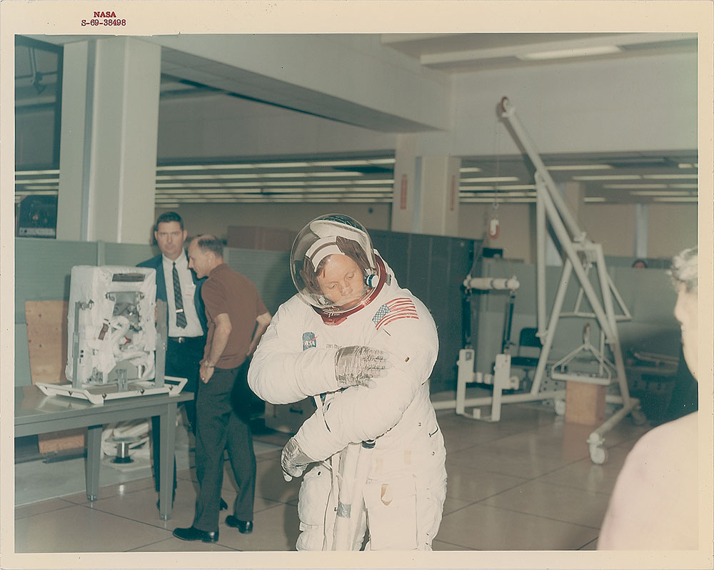 One of the most incredible aspects of the Dan Schaiewitz Collection is the astounding assortment of vintage NASA photographs. As an integral part of KSC’s PLSS training, most notably on the first lunar landing mission, he actually took part in these amazing behind-the-scenes moments: Dan himself tested Armstrong’s space suit. Offered here are exceptionally rare Apollo 11 red-numbered training photographs, many of them quite possibly never-before-seen by collectors and offered here for the first time.