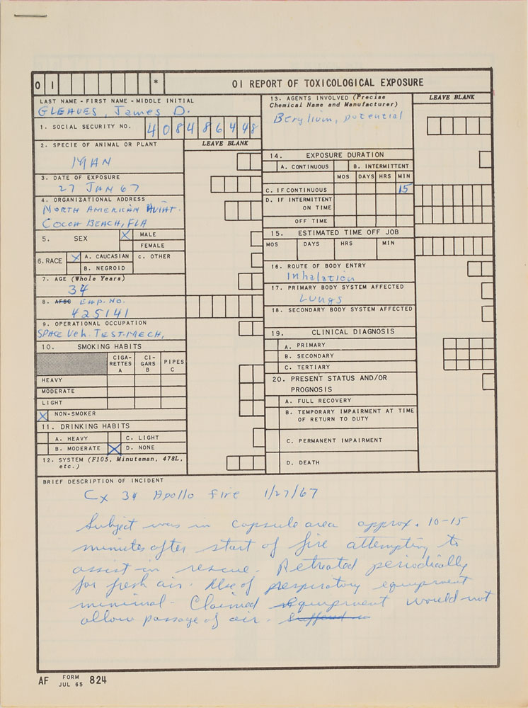"Toxicological Exposure" report from the Apollo 1 tragedy