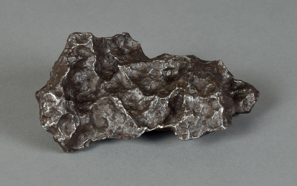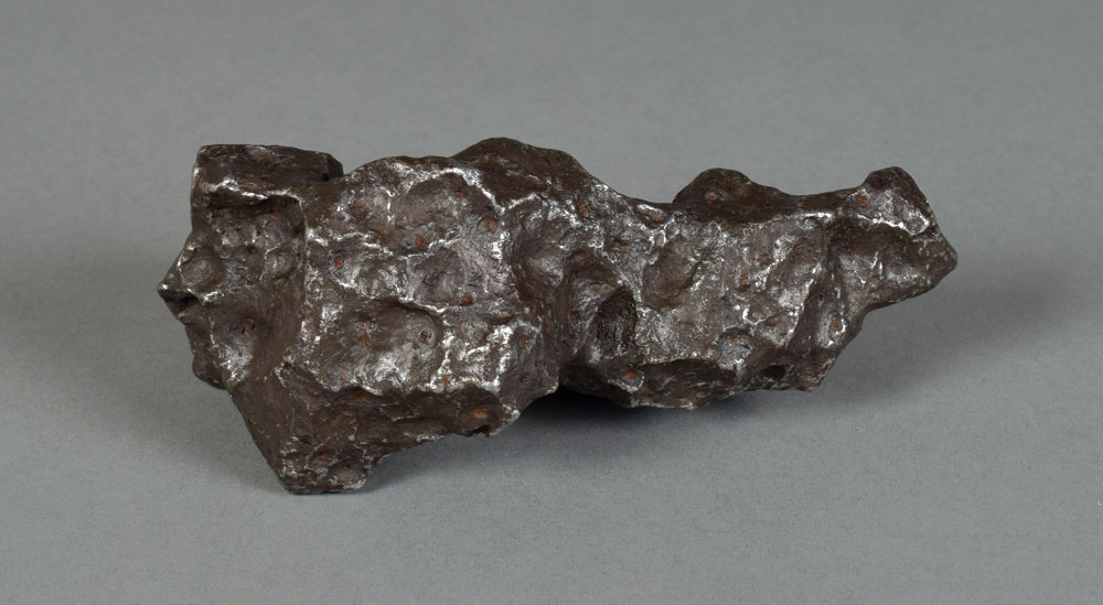 Desirable Campo del Cielo iron meteorite with outstanding sculptural surface features; the surface is entirely covered by regmaglypts: small oval indentations that are unique to meteorites and caused by ablation in our atmosphere during flight. The complete specimen weighs 1,599 grams and measures approximately 150 mm x 95 mm x 65 mm. The Campo del Cielo meteorite is believed to have fallen to Earth 5,600 years ago and was first discovered in 1576. An exceptionally fine display piece. Accompanied by a certificate of authenticity signed by Geoff Notkin of Aerolite Meteorites Inc. and the TV show Meteorite Men. Noted expert and "Meteorite Man" Geoff Notkin educates us on his adventures worldwide as a meteorite hunter in this podcast.