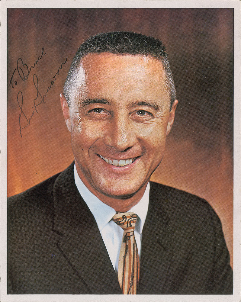 Very desirable official color 8 x 10 NASA lithograph of the legendary Liberty Bell 7 pilot, signed and inscribed in black felt tip, "To Bruce, Gus Grissom.” In fine condition. Accompanied by a full letter of authenticity from JSA.