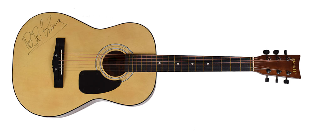 Natural-finish Mark II student acoustic guitar, signed on the body in black felt tip by B. B. King. In fine condition.