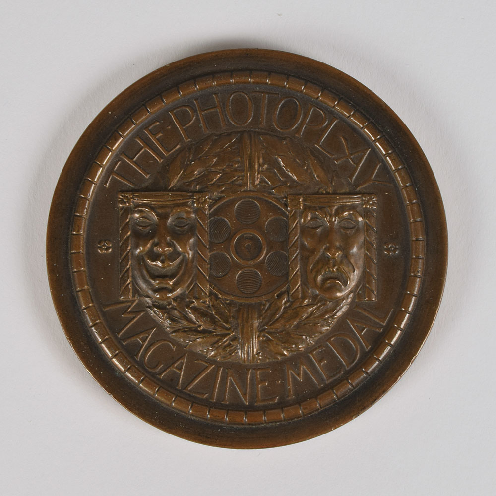 Sought-after bronze Photoplay Magazine Medal of Honor, just under 3″ in diameter, with raised text on the reverse: "Presented to Paramount-Famous-Lasky Corp. by Photoplay Magazine for the Production Beau Geste, the Best Photoplay of the Year 1926." The front of the medal features the traditional symbolic dramatic masks raised in high relief. In fine condition. Beginning in 1920, Photoplay gave out what is considered the first significant annual movie award, the Photoplay Medal of Honor. The award was voted on by readers of the magazine and the producer of the winning film was presented with a gold medallion struck by Tiffany, which was generally kept by the studio; bronze copies such as this were created in very limited amounts as individual keepsakes for some of the film's important participants. Though Photoplay only gave the single award for best film, its intentions and standards were influential on the Academy Awards founded later in the decade.