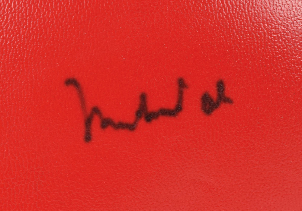 Red left-handed Everlast 12-ounce boxing glove, signed on the top in black felt tip by Muhammad Ali. In fine condition. Originally obtained by in-person specialist Mike Wehrmann.