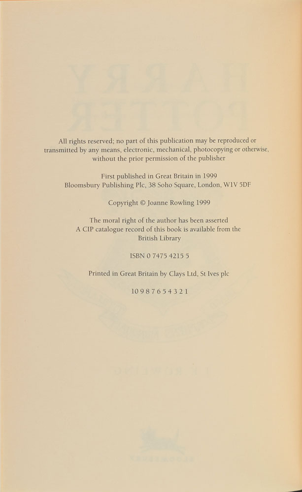 The exceedingly rare “Joanne Rowling” first printing of the Prisoner of Azkaban