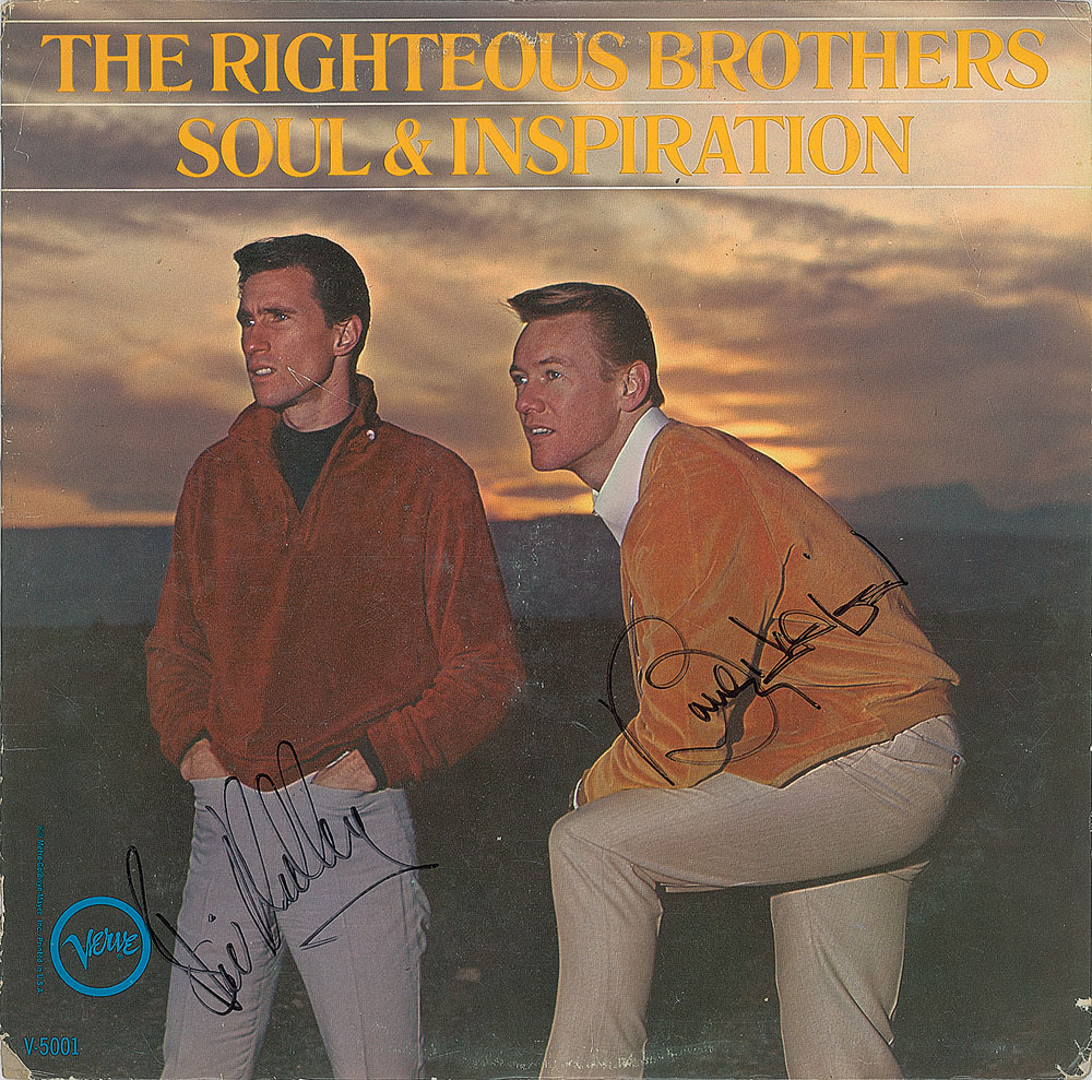 Two albums, Soul & Inspiration and The Righteous Brothers Standards, both signed in black felt tip by Bill Medley and Bobby Hatfield. In overall very good to fine condition. The records are included.