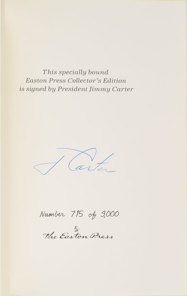 Signed book: Always a Reckoning. Limited collector's edition, numbered 715/3000. Norwalk, CT: Easton Press, 1995. Leatherbound hardcover, 6.25 x 9.25, 130 pages. Signed on the colophon in blue ballpoint, "J. Carter." In very fine condition.