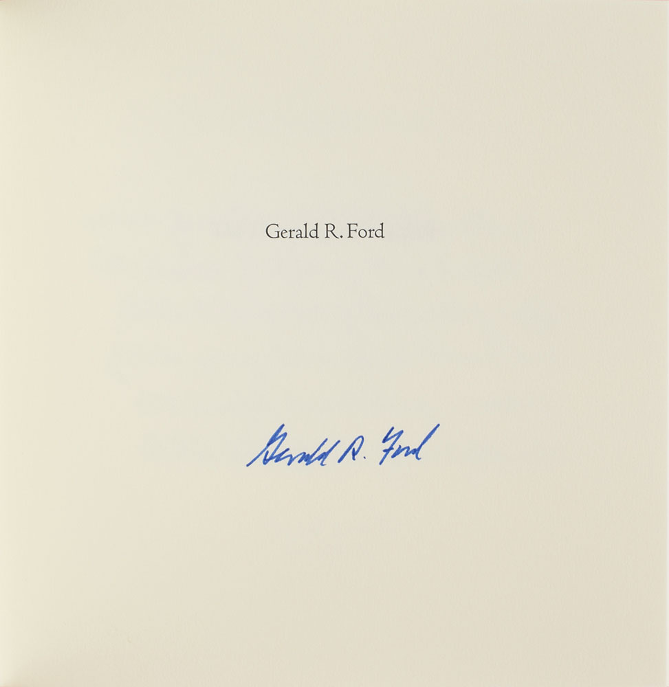 Signed book: The Thirty-eighth President. Limited edition, numbered 204/300. Reno, Nevada: Jack Bacon & Company, 2001. Clothbound hardcover, 8.25 x 8.25, 10 pages. Signed on an opening page in blue felt tip, "Gerald R. Ford." In very fine condition.