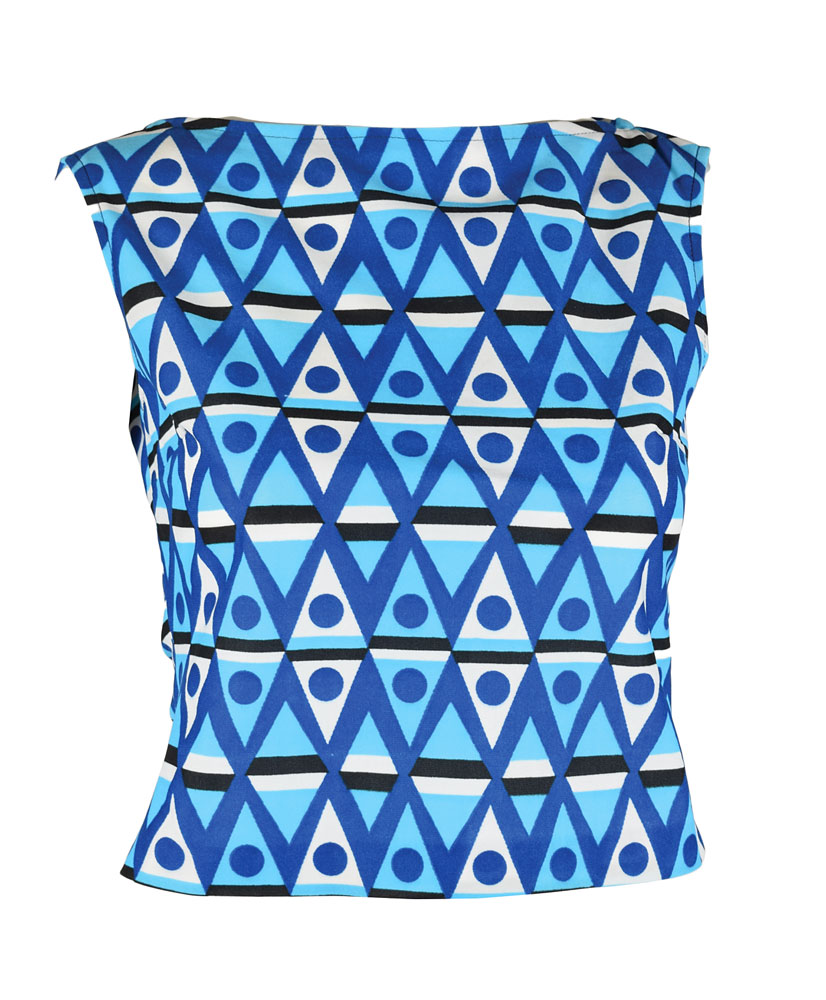 Multicolored shirt worn on screen by Kirsten Dunst in her role as Betsy Jones in the 1999 film Dick. This bright sleeveless shirt, no size, features a variety of geometric patterns, with the inner collar annotated in faint black felt tip. In fine condition. Accompanied by a certificate of authenticity from the Movie Prop King.