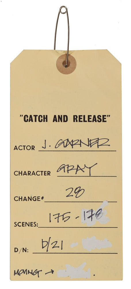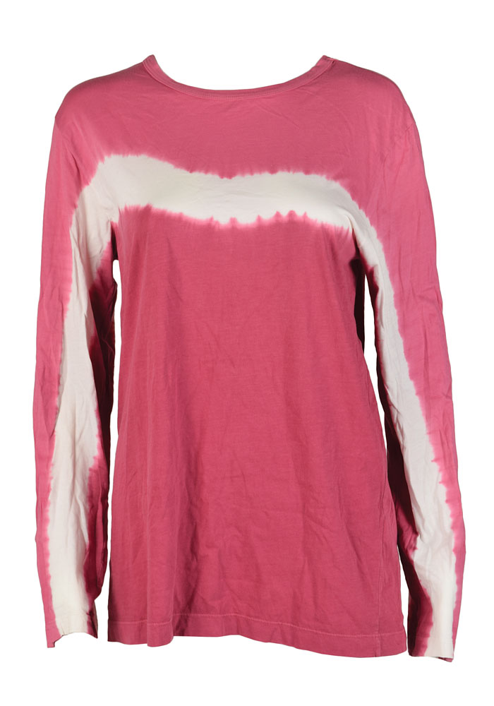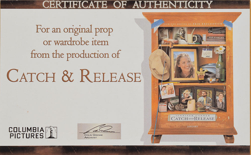 Long-sleeve shirt, worn on screen by Jennifer Garner in her role as Gray in the 2006 romantic comedy Catch and Release. The tricolor rose, white, and fuchsia tie-dye shirt was made by Theory and is a size small. In fine condition. Accompanied by a certificate of authenticity from Columbia Pictures and the original wardrobe tag, which notes that this shirt was worn as part of her outfit in scenes 175-178.
