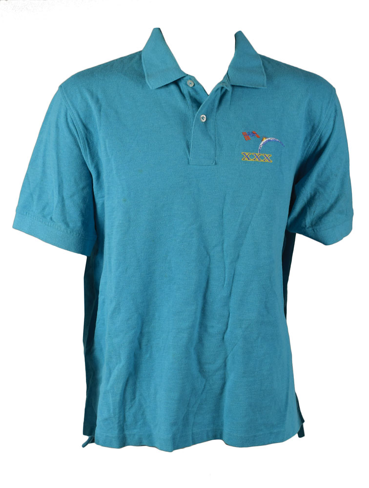 Oleg Kononenko's flown teal Lands' End short-sleeve polo shirt embroidered with the Expedition 30 insignia, size large, delivered to him on the ISS via Progress and eventually returned to Earth in Dragon. The inner collar has been signed in black felt tip by Kononenko. In fine condition. Accompanied by a handwritten letter of provenance from Kononenko, in full: "This teal Expedition 30 Land's End shirt arrived by Progress to ISS and returned to Earth in Dragon. I used this shirt while on board ISS."