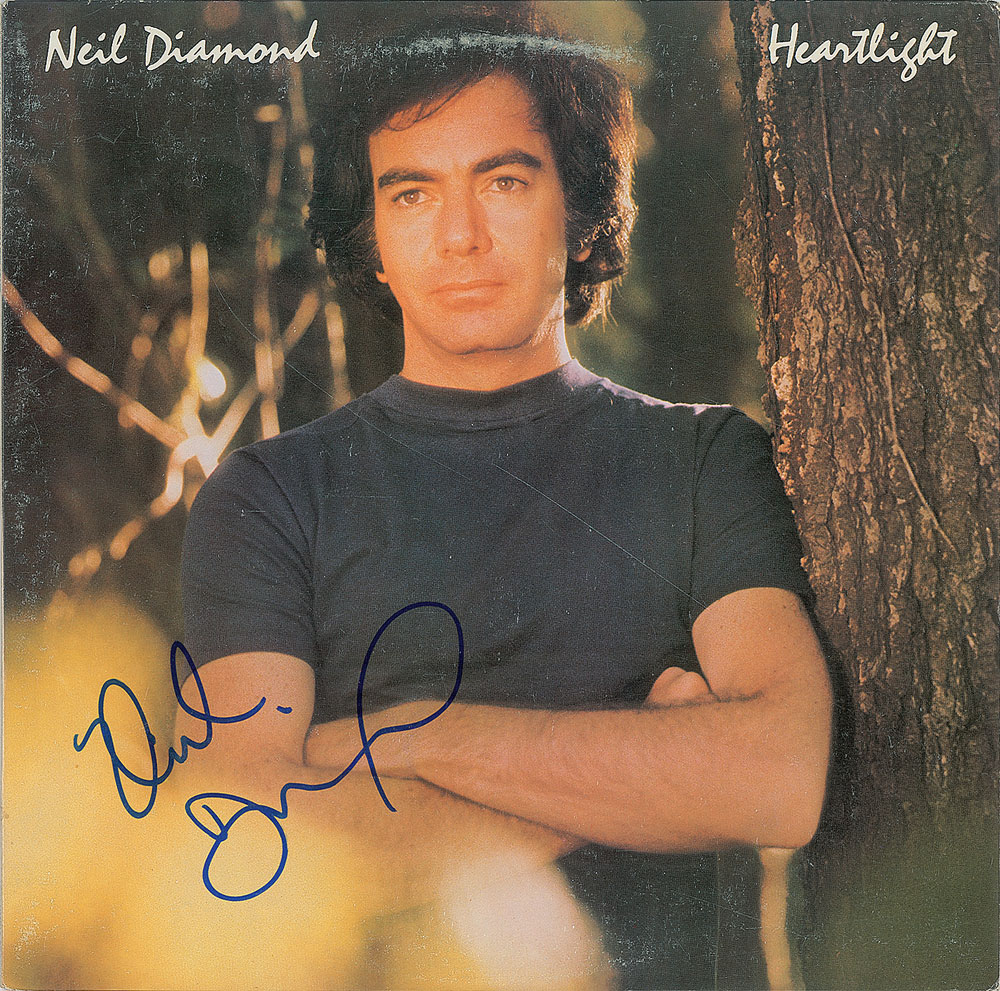 Heartlight album signed on the front cover in blue felt tip. In very good to fine condition, with scuffing, two light scratches across his shirt, and a bit of sticker residue to the upper right corner. The record is included. Consignor notes that the signature was obtained at the Fairlawn Hilton in Ohio while on tour.