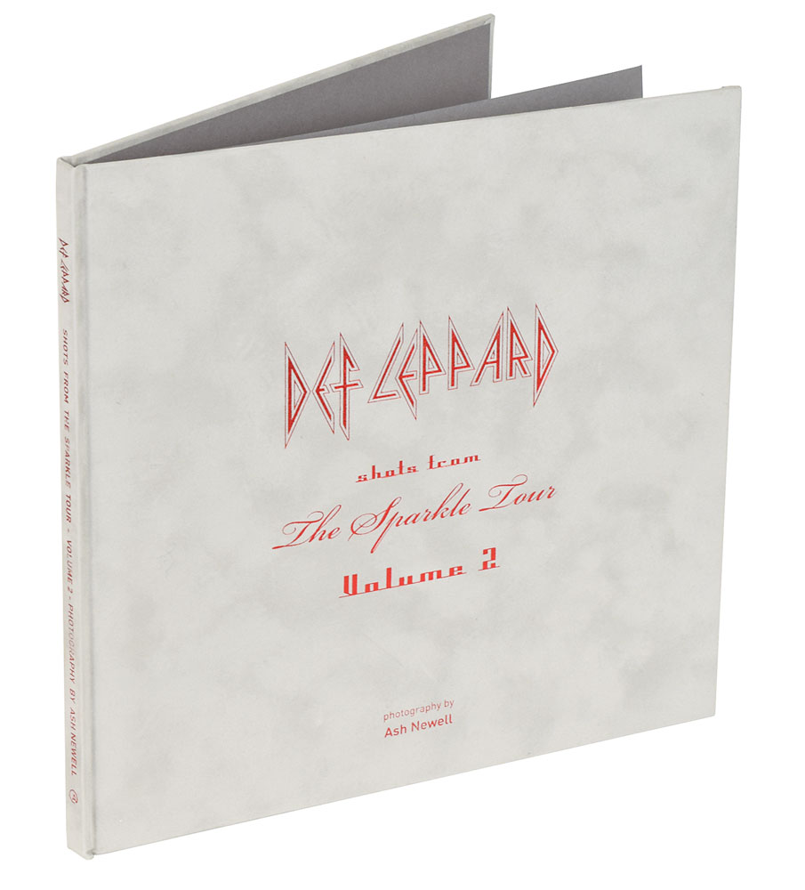 Signed book: Shots from the Sparkle Tour: Volume 2. Limited edition, unnumbered, one of 250 signed copies. Wales: MWL Print Group, 2009. Velvet-bound hardcover, 12 x 12, 80 pages. Signed on the colophon in black felt tip by Joe Elliott, Rick Savage, Rick Allen, Phil Collen, and Vivian Campbell. In very fine condition.