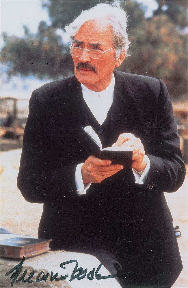 Two color glossy photos of Gregory Peck, both signed in black felt tip: one 8 x 10 photo shows him in a suit and tie against a large map, and the other 5 x 7.5 photo depicts the actor in older age writing in a small book. In overall fine condition.