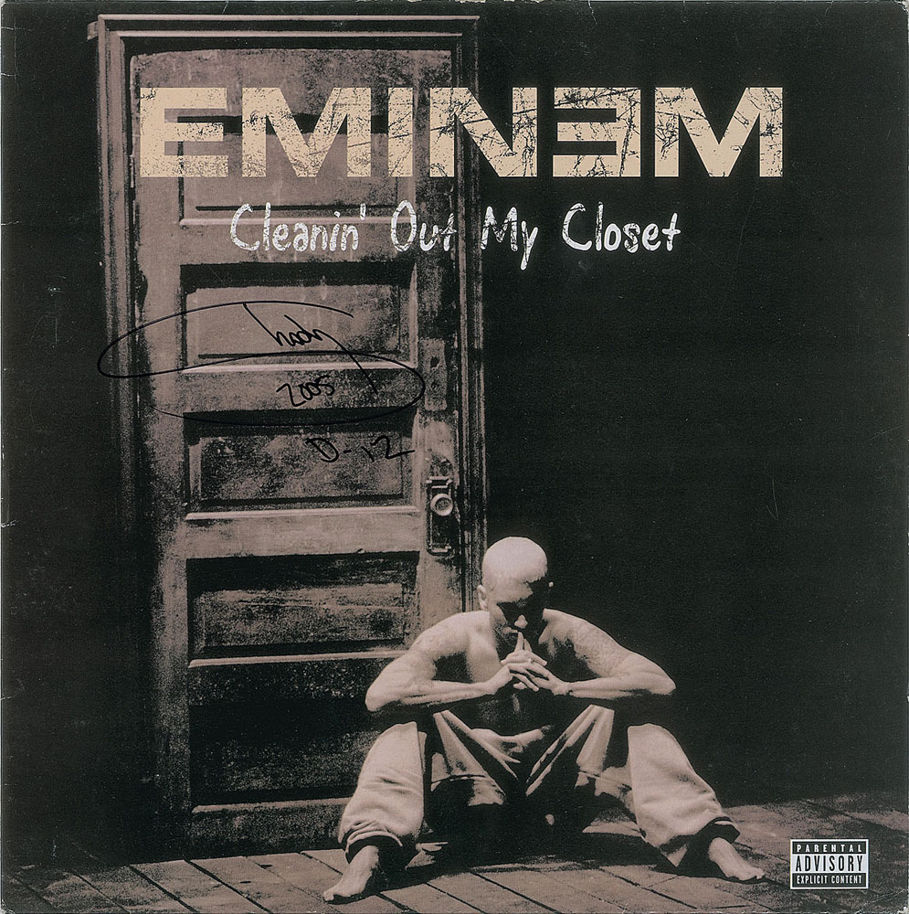 'Cleanin' Out My Closet' single album signed on the front cover in black felt tip, "Shady, 2005, D-12." In fine condition, with slight separation along the top edge. The record is included. From The John Brennan In-person Autograph Collection.