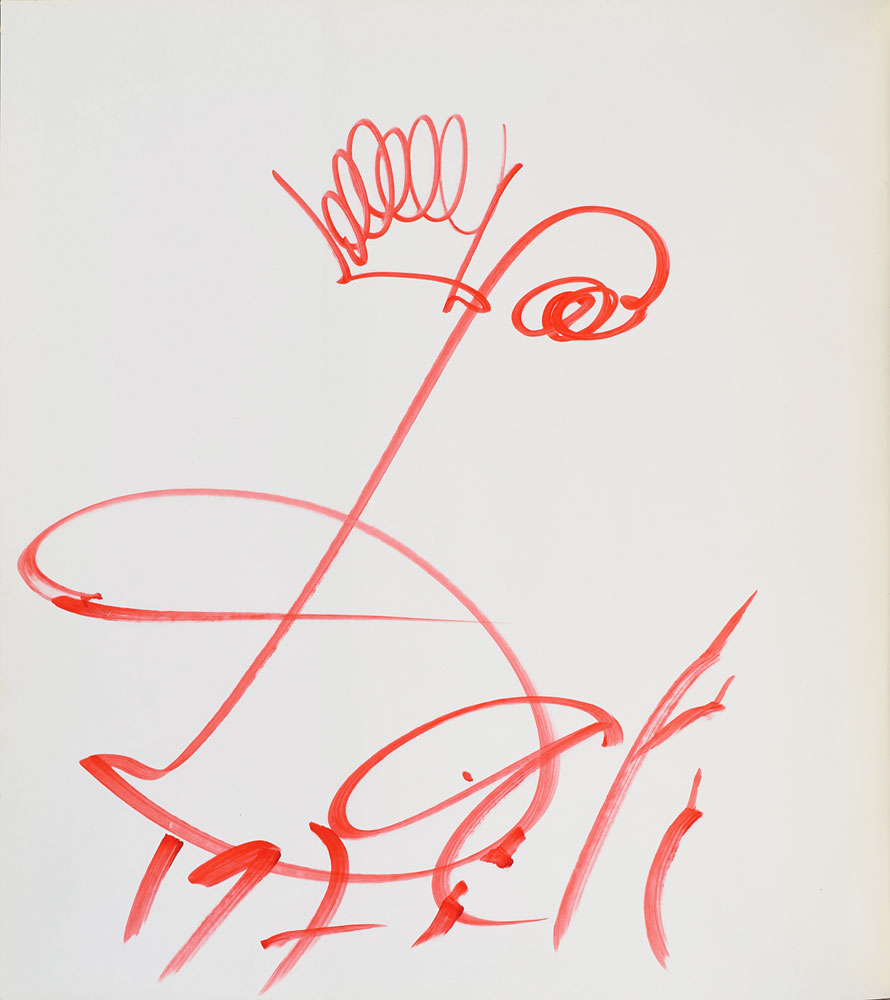 Signed book: Dali de Draeger. First edition, limited issue of 1500. France: Draeger, 1968. Hardcover with dust jacket, 11.5 x 12. Prominently signed opposite the title page in red paint, "Dali, 1971," adding a crown at the top. Autographic condition: fine. Book condition: VG/VG, with edgewear and rubbing to dust jacket. A fantastic and sought-after 'original painting' by one of the most famous artists of the 20th century.