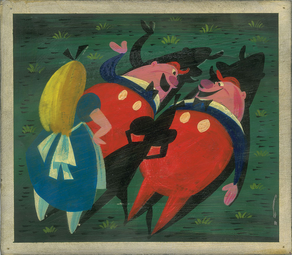 Mary Blair concept painting from Alice in Wonderland: Exceedingly rare Tweedledum and Tweedledee painting