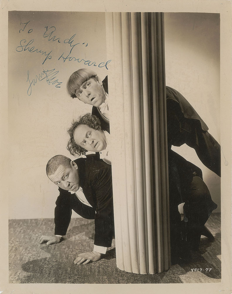 Moe, Larry, and Curly signed by Moe, Larry, and Shemp