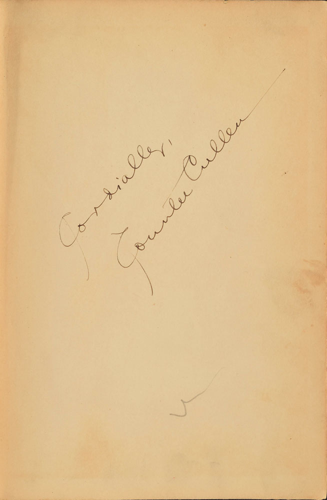 African-American poet (1903-1946) who came to prominence during the Harlem Renaissance. Signed book: The Black Christ. Later printing. NY: Harper & Brothers, 1929. Hardcover, 5.25 x 7.75, 110 pages. Signed on the first free end page in fountain pen, "Cordially, Countee Cullen." Autographic condition: very good to fine, with light soiling and toning to the signed page. Book condition: VG/None, with edgewear, heavy wear to paper spine label, and some scuffing to boards.