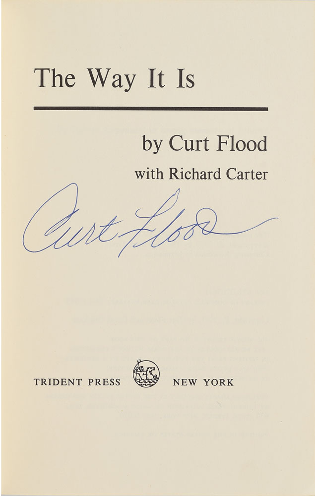 Signed book: The Way It Is. First edition. NY: Trident Press, 1971. Hardcover with dust jacket, 5.75 x 8.25, 236 pages. Signed on the title page in blue ballpoint by Flood. In fine condition, with corner loss to the first free end page, and wear and chipping to the dust jacket.