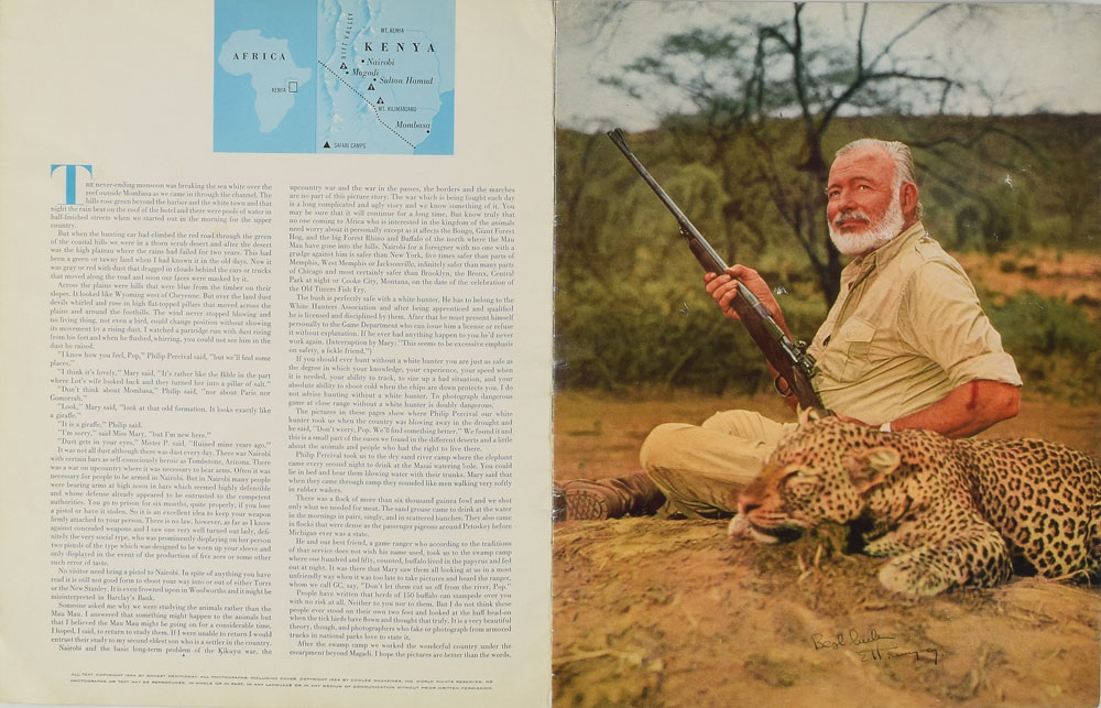 "Hemingway's First Picture Story," signed six times by the great author with observations on his African safari