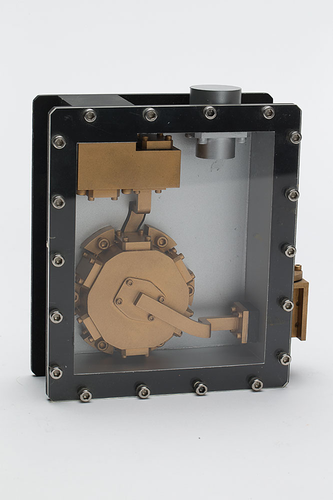 Millimeter Wave Unit scale model representing part of an unknown antenna system, measuring 6.5″ x 5.5″ x 2″, made by the Scale Model Co. of Hawthorne, California. In fine condition.