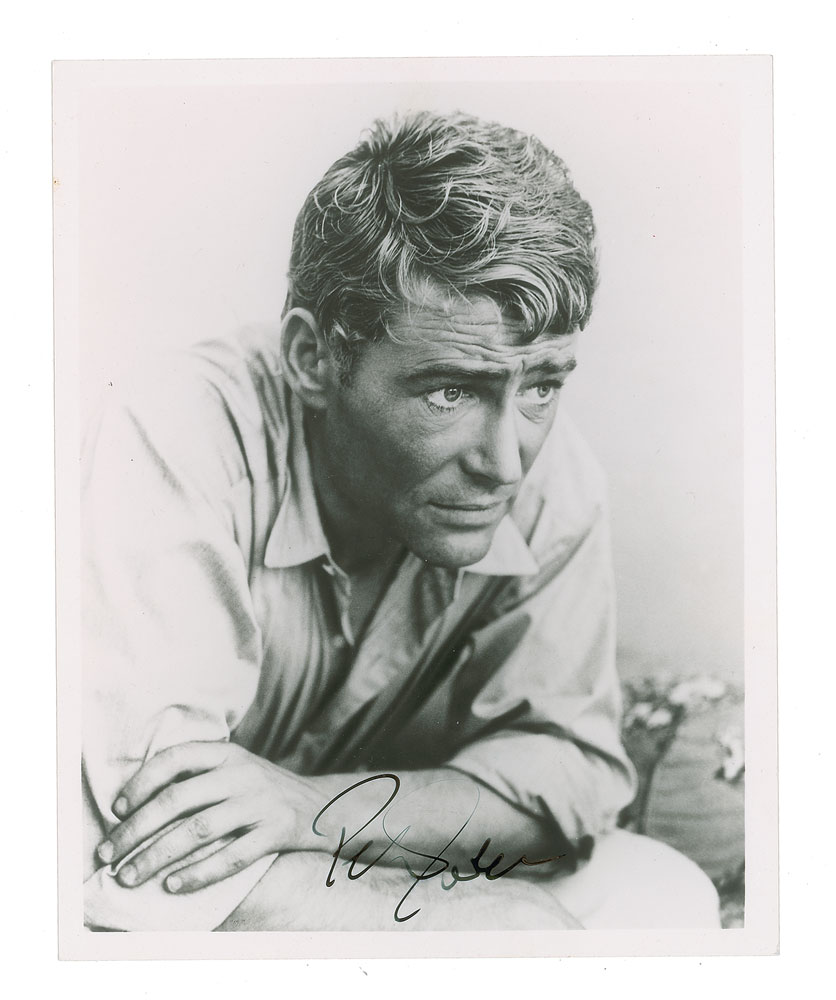 Glossy 8 x 10 photo of Peter O'Toole in a handsome early pose with folded arms, signed in black ink. In fine condition.