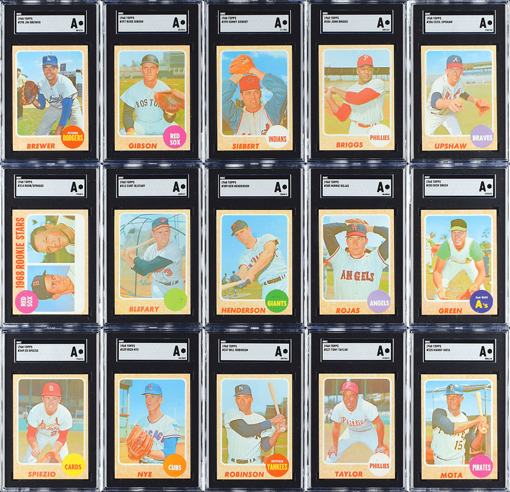 Total of 20 cards from the 1968 Topps Baseball 4th Series, which are exactly as you would expect to see, except the fronts are without all the black printing ink. The reverses are the same as the regular cards. Such a weird phenomenon, but printing issues do happen, and cards like these are wonderfully in demand. All cards present as NM/MT to MINT condition with razor sharp corners, great focus?everything you would want, except the blank ink on front.