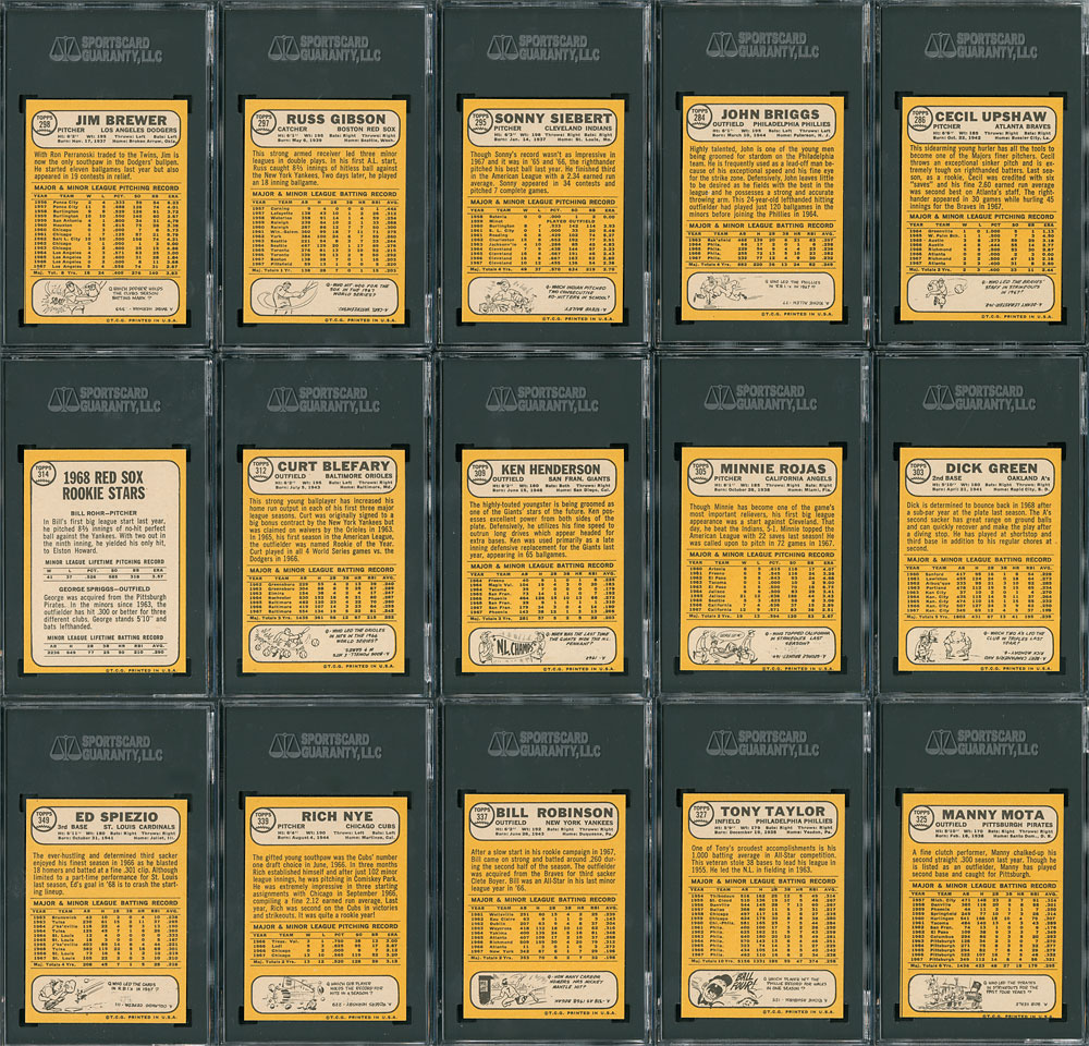 Includes: #278 Cepeda CL, 284 Briggs, 285 McAuliffe, 286 Upshaw, 291 Lines, 295 Siebert, 297 Russ Gibson, 298 Brewer, 303 Green, 305 Rojas, 308 Pirates team, 309 Henderson, 312 Blefary, 314 Red Sox Rookies, 325 Mota, 327 Taylor, 337 Bill Robinson, 339 Nye, 349 Spiezio and 360 Willie Horton.