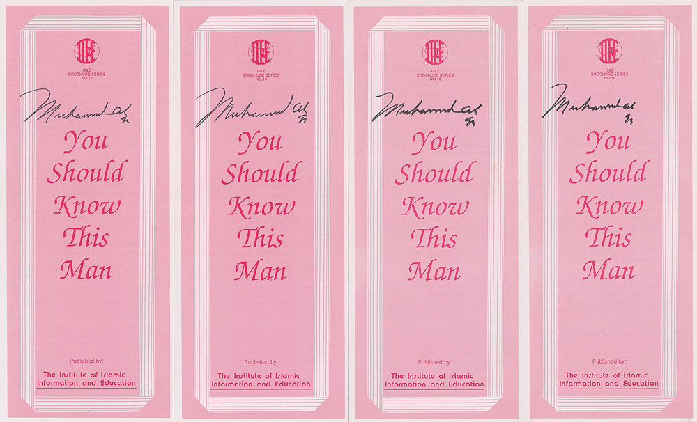Group of four religious pamphlets entitled 'You Should Know This Man,' each signed on the front cover in black felt tip or ballpoint by Muhammad Ali, who adds the years, "91" or "93." In very fine condition. From The John Brennan In-person Autograph Collection.