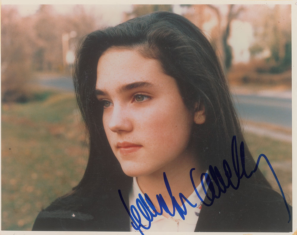 Group of five color glossy photos of beautiful leading ladies from the 1980s, each approximately 8 x 10 and 10 x 8, signed in felt tip by the pictured actress: Jennifer Connelly, Kelly LeBrock, Molly Ringwald, Ally Sheedy, and Brooke Shields. In overall fine condition, with a light bend to the left edge of Shields. From The John Brennan In-person Autograph Collection.