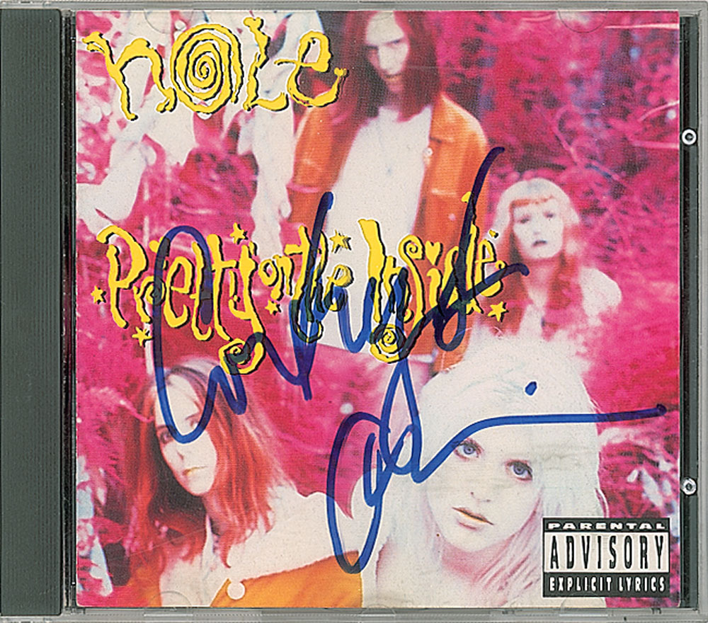 Pretty On the Inside CD signed on the front of the booklet in blue felt tip, "Courtney Love Cobain." In fine condition. The CD is included. From The John Brennan In-person Autograph Collection.