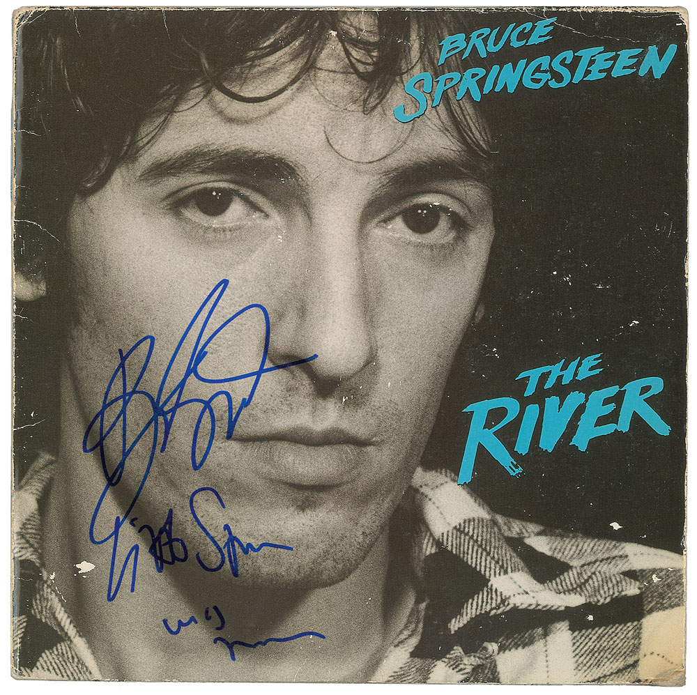 The River album signed on the front cover in blue felt tip by Bruce Springsteen and Steven Van Zandt, who writes "Little Steven was here." In very good to fine condition, with scuffing and edge wear. The records are included. From The John Brennan In-person Autograph Collection.