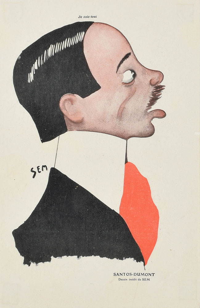 In overall very good to fine condition. Also includes a color 6 x 9.5 printed caricature of Santos-Dumont by Georges Goursat, known as Sem.