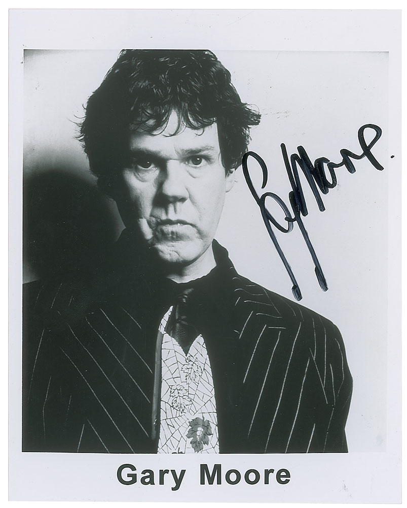 Glossy 8 x 10 photo of Moore in a suit and tie, signed in black felt tip. In fine condition, with small surface creases.