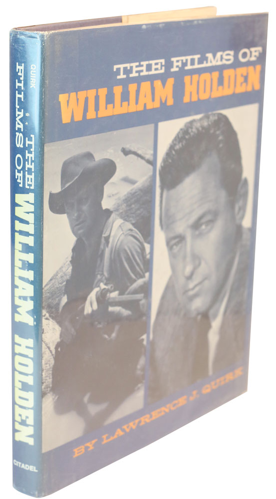 Signed book: The Films of William Holden. First edition. Secaucus, NJ: The Citadel Press, 1973. Hardcover with dust jacket, 8.75 x 11.25, 255 pages. Signed and inscribed on the first free end page in green felt tip, "To Art, All best—Bill Holden." The inside of the book is also signed inside in various ink types by over 80 actors and actresses, as well as a few other film industry notables, including: Claude Akins, June Allyson, Richard Anderson (3), Dana Andrews, Malcolm Atterbury, Luke Askew, Parley Baer, Joe Don Baker, Don ‘Red’ Barry, Whit Bissell (2), Michael Blankfort, Argentina Brunetti, William Bryant, William Campbell, Macdonald Carey (2), Harry Carey, Jr. (2), Lynn Carlin, Anthony Caruso, Charles Champlin (2), Stanley ‘Stash’ Clements (2), Ellen Corby (2), Jerome Courtland, John Crawford, Pat Crowley, Ken Curtis, Richard Dawson, Lee De Broux, Paul Denis, Helen Denis, Marj Dusay, Vince Edwards, Richard Erdman, Leif Erickson, Gene Evans, Mel Ferrer, Glenn Ford (2), Pamela Franklin, Arthur Franz (2), Victor French, Ted Gehring, Peter Graves, Billy Gray, Moses Gunn, Peter Hansen, Myron Healey, Marcel Hillaire, Earl Holliman, Bo Hopkins, Richard Jaeckel, Ben Johnson, L. Q. Jones (2), Dorothy Lamour, Marc Lawrence, Virginia Leith, Richard Loo, William Lucking, Keye Luke, Dewey Martin, Andrew McLaglen, Ray Milland (2), Hal Needham, Lloyd Nolan, Maidie Norman, Kim Novak, Warren Oates, James Olsen, Patrick O'Neal, Larry Pennell, Joanna Pettet, Bill Phipps, Don Porter, Judson Pratt, Andrew Prine, Thomas M. Pryor, Tom Skerritt, Jeremy Slate, Arthur Space, Susan Strasberg, Gil Stratton, Jr., Woody Strode, Dub Taylor, Kevin Thomas, Warren Vanders, and John Williams. In fine condition.