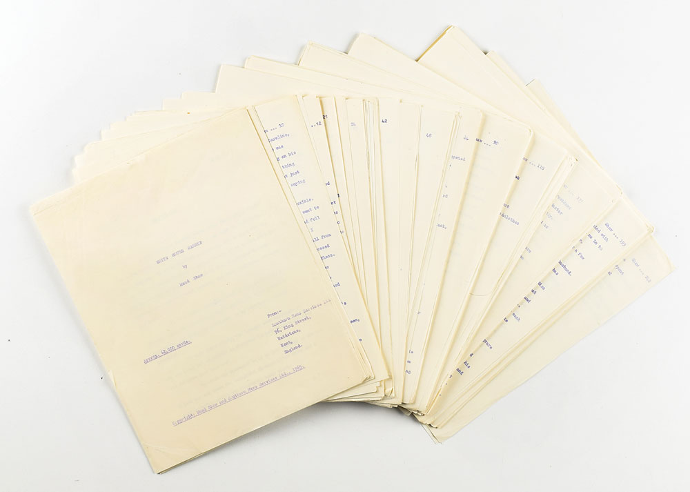 Prepublication mimeograph typescript of “White House Nannie,” the memoirs of Maud Shaw, the nanny to the children of John and Jacqueline Kennedy. The draft, 243 pages, 8 x 10, features a title page, which reads: “White House Nannie by Maud Shaw, Approx. 62,000 words., From:—Southern News Services Ltd., 96, King Street, Maidstone, Kent, England, Copyright: Maud Shaw and Southern News Services Ltd., 1965.” Also includes a final page related to the “back panel” of the book, with ballpoint notations for potential book layout. In fine condition.