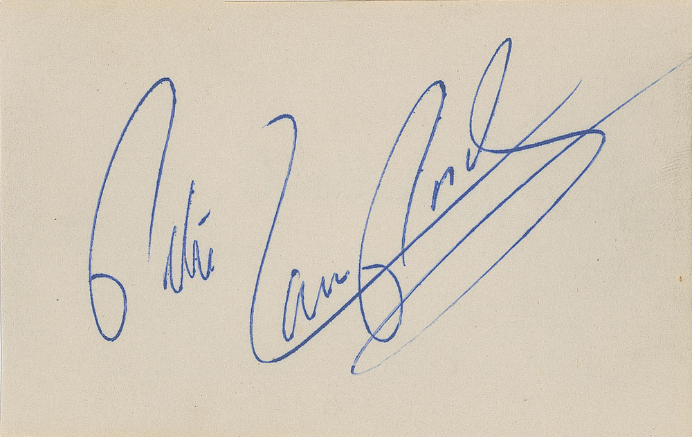 Vintage ink signature, "Peter Lawford,” on an off-white 4.5 x 2.75 album page. Reverse is signed by Oscar-winning actor Ray Milland. In fine condition.
