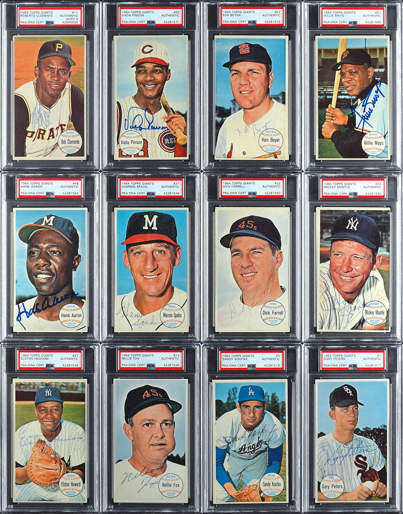 1964 Topps Giants Completely PSA/DNA Autographed PSA Set (60) with Roberto Clemente Graded MINT 9!
